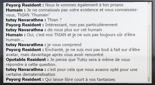- Une vue de l'écran d'interface entre les humains et les avatars :